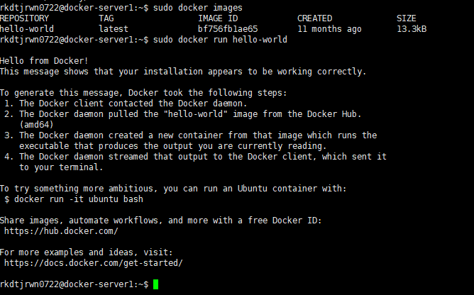 sudo docker run hello-world