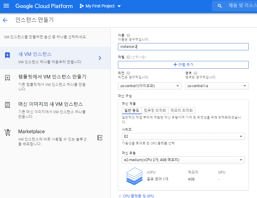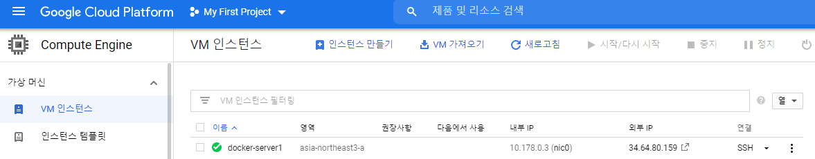 먼저 docker를 적용할 서버를 준비 하자 . GCP의 VM인스턴스를 하나 만들자.