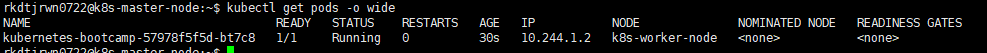 위 명령어를 실행하면 만들어 놓은 worker-node에 pod가 할당되는것을 확인 할 수 있다.
