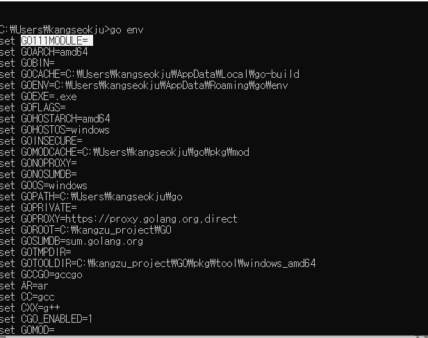 설치가 완료되고 아래와 같이 go env 명령어를 실행해 보면 정상적으로 설치가 된것을 확인 할 수 있다.