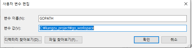 이제 앞서 말한 GOPATH를 환경변수에 설정해준다.