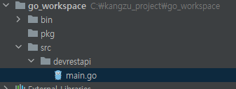 아래와 같이 src 폴더 아래에 만들고 싶은 go module에 폴더를 생성하고 아래에 main.go (자바로 생각하면 main 함수가 있는 class) 를 생성하면된다.