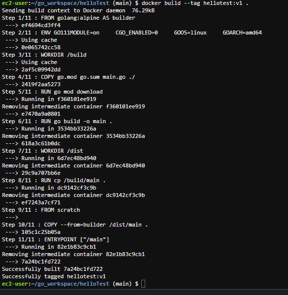 단순하다. go bulild 하고 빌드한 실행파일 만으로 docker image를 만드는것이다.