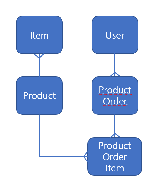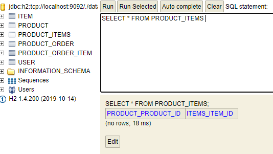 PRODUCT_ITEMS 테이블은 단순히 두 테이블의 맵핑관계를 위해 만들어진다.