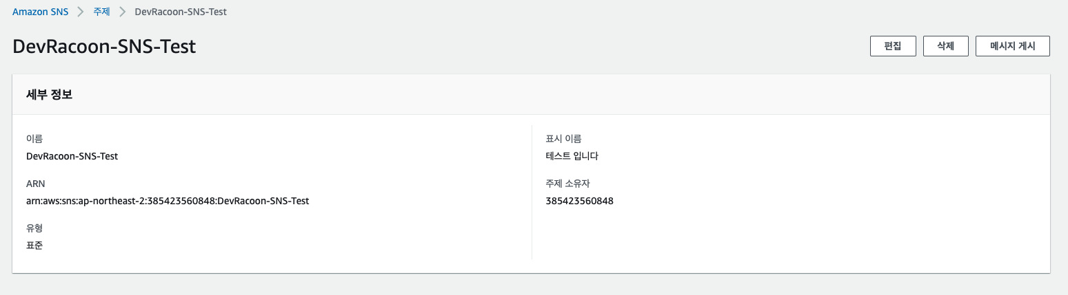 1) AWS SNS설정 및 이벤트 게시 , 구독 테스트