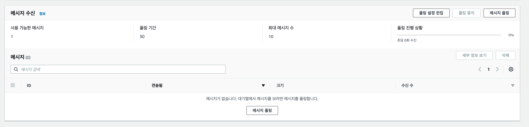 그리고 SQS로 돌아와서 메세지 전송 및 수신 버튼을 클릭