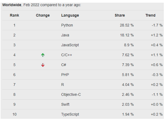 C언어 , Java , 파이썬 등이 있고, 각각의 인기도를 알아보아요.