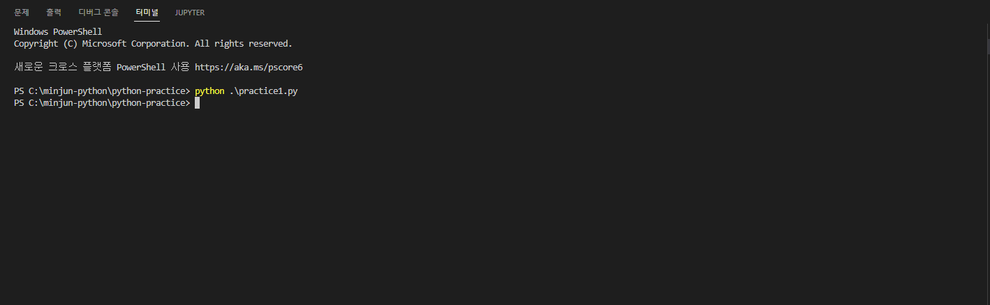 pratice.py파일을 실행시켜 보았는데. 아무것도 나오지 않았어요. 당연합니다. pratice1.py파일에 아무것도 없으니까요.