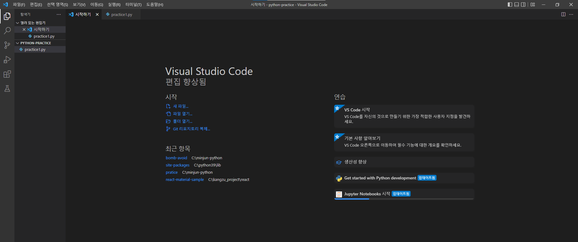 이제 vs code에서 python 코딩을 할 준비가 되었습니다.