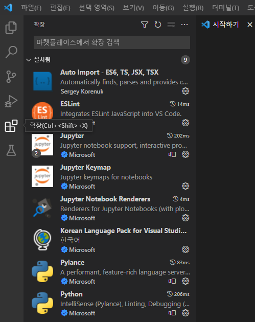 이제 vs code에서 파이썬 코딩을 하기 위해서 vs code 파이썬 플러그인을 설치 해야 해요.