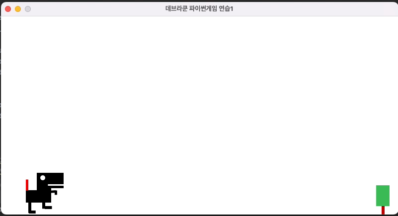 이제 조금씩 모양이 완성 되어 있는 모습을 보니 뿌듯하네요. 이제 공룡과 장애물에 속도를 넣어 주고