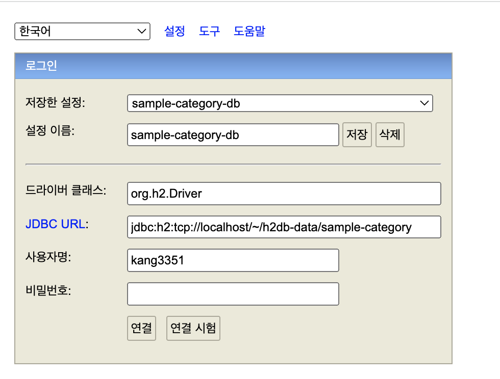 위와 같은 화면이 보여지면 설정이 잘되었고 Connect를 누루면 sample-db로 연결이 된다.